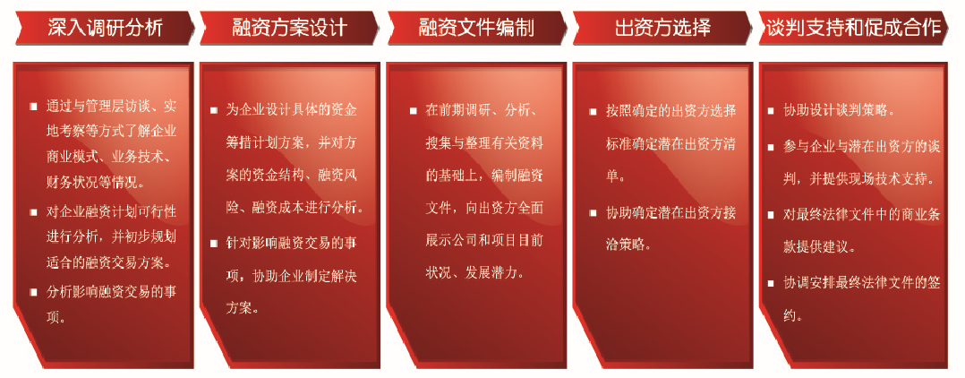 華夏經(jīng)緯以豐富的專業(yè)知識(shí)和融資咨詢經(jīng)驗(yàn)為企業(yè)提供融資方面的咨詢服務(wù),利用我們對(duì)金融市場(chǎng)融資領(lǐng)域政策走向的把握和市場(chǎng)變化的分析研究,發(fā)揮與各類金融機(jī)構(gòu)良好合作關(guān)系的優(yōu)勢(shì),協(xié)助企業(yè)實(shí)現(xiàn)融資目標(biāo),提升企業(yè)的價(jià)值創(chuàng)造能力。